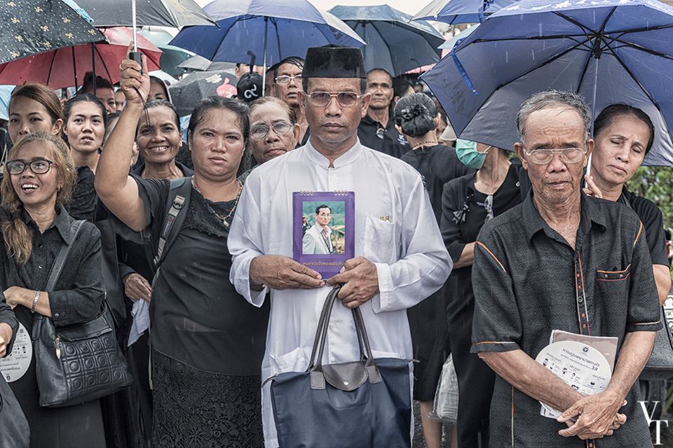 เช่นเดียวกับ ธนกฤต กาลเศรณี ช่างภาพอิสระ กล่าวถึงภาพครั้งประวัติศาสตร์ของตนเองว่า “ตั้งใจเข้าไปรอเก็บภาพตรงจุดข้างในพระบรมมหาราชวัง เพราะอยากได้ภาพที่จะแสดงได้ถึงอารมณ์ของประชาชนที่เข้ามาถวายความเคารพพระบรมศพ และอาสาสมัครที่มาช่วยงาน เพื่อแสดงถึงความเป็นน้ำหนึ่งใจเดียวกัน และแสดงให้เห็นว่าทุกคนที่มาพระบรมมหาราชวังต่างมาด้วยใจ และตั้งใจทำเพื่อพ่อโดยไม่มีข้อแม้ใดๆ”