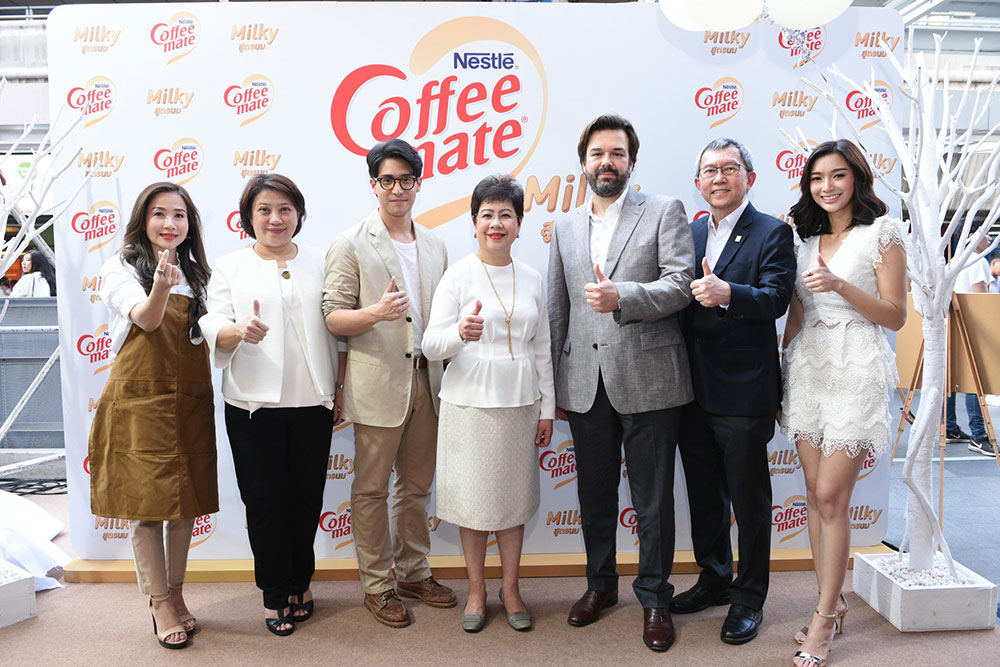 คณะผู้บริหารเนสท์เล่ นำโดย นางออดรีย์ เลียว ประธานกรรมการและประธานคณะผู้บริหาร เนสท์เล่ อินโดไชน่า พร้อมด้วยผู้บริหารบริษัท เนสท์เล่ (ไทย) จำกัด ร่วมงานเปิดตัวผลิตภัณฑ์ใหม่ล่าสุด “เนสท์เล่ คอฟฟีเมต มิลค์กี้” สูตรนมแท้ อย่างเป็นทางการ ได้แก่ นายแวลดดิสลาฟ อังดรีฟ ผู้อำนวยการบริหารธุรกิจผลิตภัณฑ์กาแฟและครีมเทียม นางสาวสมฤดี บุญให้เจริญ ผู้อำนวยการด้านการสื่อสารและบริการทางการตลาดนางสาวศรีประภา จิงประเสริฐสุข ผู้จัดการฝ่ายการตลาดอาวุโส กลุ่มธุรกิจกาแฟผงสำเร็จรูป ครีมเทียมและชา และ นางสาวพัทนัย เหลืองตระกูล ผู้จัดการฝ่ายสื่อสารองค์กรและประชาสัมพันธ์ พร้อมด้วย กรรณ สวัสดิวัตน์ ณ อยุธยา แบรนด์แอมบาสเดอร์ของ “เนสท์เล่ คอฟฟีเมต มิลค์กี้” สูตรนมแม้ ร่วมงานเปิดตัวซึ่งจัดขึ้นที่สยาม สแควร์ วัน