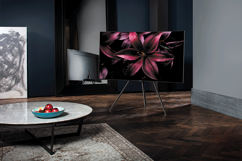 1) Q Style: ดีไซน์เรียบหรู ลงตัวทุกการจัดวาง ด้วยสายเชื่อมต่ออินวิซิเบิลคอนเนคชั่น (Invisible Connection) สายไฟเบอร์ออปติคที่รวมสายไฟฟ้าต่างๆ ที่เชื่อมต่อกับทีวีให้เป็นสายเดียว และขายึดผนัง No-Gap Wall Mount ที่สามารถติดทีวีได้แนบชิดไปกับผนังจนแทบไม่เหลือช่องว่าง เพื่อมุมมองบ้านอย่างลงตัวไร้ที่ติ หรือเพิ่มความสวยงามหรูหราด้วยขาตั้งรุ่นสตูดิโอสแตนด์ (Studio Stand) และรุ่นกราวิตี้สแตนด์ (Gravity Stand)