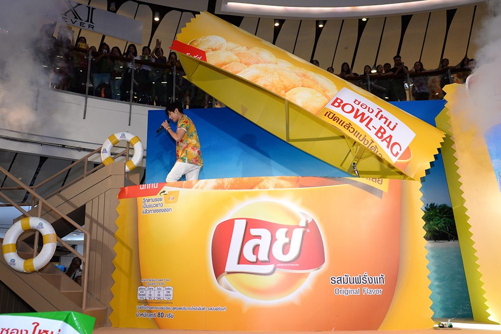 เลย์ มันฝรั่งทอดกรอบอันดับหนึ่งของเมืองไทย โดย บริษัท เป๊ปซี่–โคล่า (ไทย) เทรดดิ้ง จำกัด เนรมิตชายหาดสุดชิคใจกลางกรุงต้อนรับซัมเมอร์ จัดงาน “Lay’s Bowl – Bag ซองเปิดกว้าง แชร์ง่าย” เพื่อเปิดตัว “เลย์ โบว์ล – แบ็ค” (Lay’s Bowl – Bag) ครั้งแรกในเอเชียแปซิฟิกกับนวัตกรรมแพ็คเกจจิ้งสุดล้ำที่ผสมผสานความเป็นซองและชามในหนึ่งเดียว โดดเด่นด้วยฟังก์ชั่นพิเศษ “ฉีกง่าย – ตั้งได้ – ซองเปิดกว้าง – แชร์ความอร่อยได้พร้อมกัน” พร้อมเผยโฉมพรีเซ็นเตอร์คนล่าสุด “เป๊ก ผลิตโชค” ที่มาร่วมแชร์ความสุขและความอร่อยผ่านแคมเปญ พร้อมร้องเพลงประกอบภาพยนตร์โฆษณา “แชร์เลย์ แชร์เลย” โดยชวนคนไทยร่วมสร้างปรากฏการณ์ “ฉีก – ตั้ง – แชร์” เพิ่มดีกรี ความสนุกในทุกโมเม้นต์ตลอดหน้าร้อน ณ ศูนย์การค้าเซ็นทรัลเวิลด์